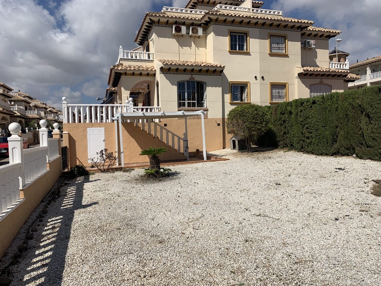 **Stunning South-Facing Corner Quad Villa in Lomas de Cabo Roig**Discover this beautifully maintained, south-facing corner plot quad villa, perfect for those seeking a blend of comfort and convenience. Boasting a massive 200m2 garden area, there’s ample room to fit your own private swimming pool. The villa features 2 spacious bedrooms, including a master bedroom with a private balcony terrace, and two well-appointed bathrooms (one with a shower, one with a bath).The open-plan kitchen comes equipped with all necessary appliances, seamlessly flowing into a well-sized lounge/dining room. Enjoy outdoor meals on the terrace or soak in the panoramic views of the Mediterranean Sea from the solarium. The low-maintenance garden and extended covered front terrace with underneath storage add to the appeal.Residents have access to a communal pool and gardens, and the property is sold fully furnished and key ready, including white goods, TV, air conditioning, ceiling fans, fitted wardrobes, and security grills.Located within walking distance to the Lomas de Cabo Roig commercial area and close to supermarkets, bars, restaurants, and local shops. Cabo Roig beach is less than 3km away. Community fees are 250 Euros per year, and Suma is 400 Euros per year. Don’t miss out on this exceptional opportunity to own a piece of paradise!